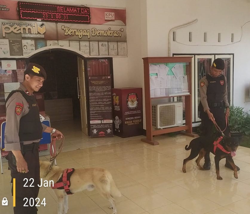 “Kami juga melakukan sterilisasi menggunakan Satwa K9 untuk mendeteksi adanya bahan peledak atau benda berbahaya lainnya, yang dapat mengganggu kegiatan penyelenggara pemilu,” ujarnya.